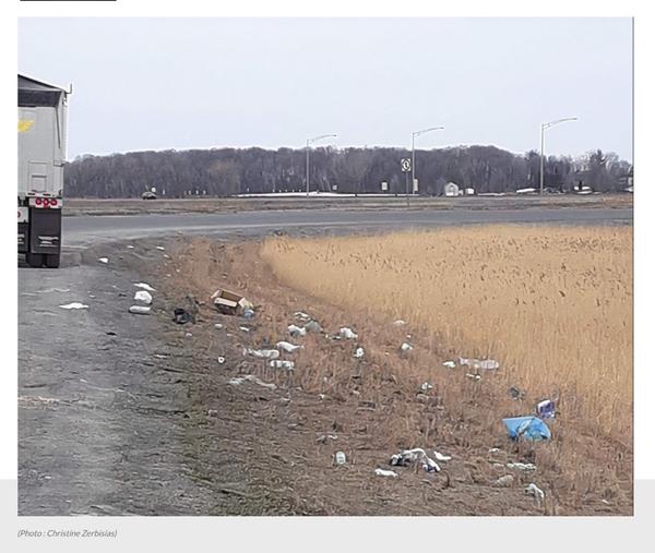 17/02/2026 Déchets sur la bretelle de l’autoroute 30 | À quand une aire de repos pour les chauffeurs?